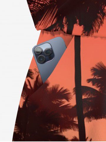Plus Size Coconut Tree Dip Dye Ombre Print Hawaii Drawstring Pocket Romper - Orange - 3x