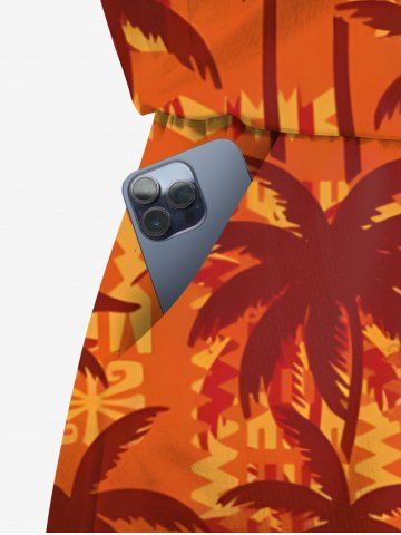 Plus Size Coconut Tree Ethnic Print Hawaii Drawstring Pocket Romper - Orange - 3x