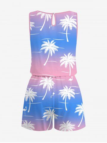 Graphic Pants > Plus Size Coconut Tree Flamingo Ombre Colorblock Print Cinched Hawaii Romper