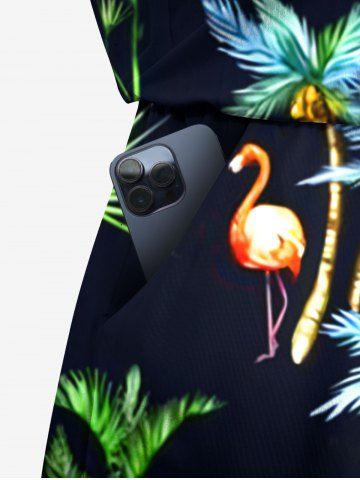 Plus Size Coconut Tree Flamingo Print Hawaii Drawstring Pocket Romper - Black - M