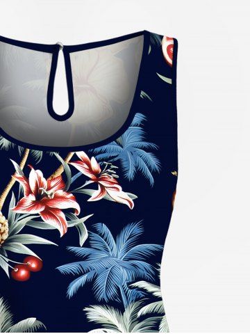 Graphic Pants > Plus Size Coconut Tree Hibiscus Flower Beer Conch Print Hawaii Drawstring Pocket Romper