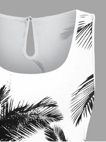 Plus Size Coconut Tree Ink Painting Print Hawaii Drawstring Pocket Romper - White - Xs