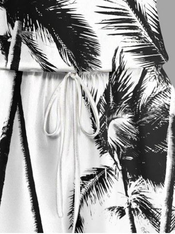 Plus Size Coconut Tree Ink Painting Print Hawaii Drawstring Pocket Romper - White - L