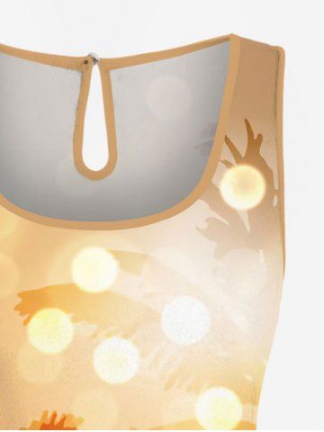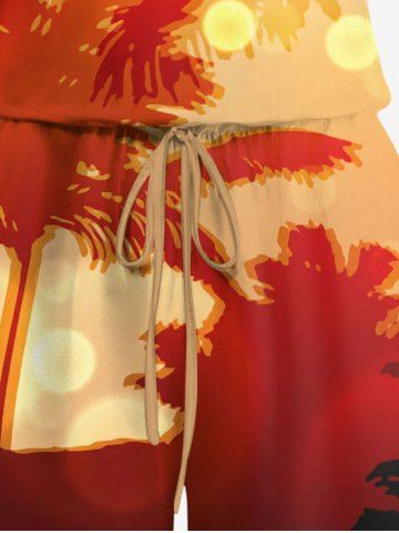Plus Size Coconut Tree Light Spot Print Cinched Hawaii Romper - Orange - 6x
