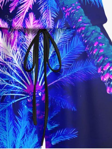 Plus Size Coconut Tree Neon Glitter 3D Print Cinched Hawaii Romper - Purple - 2x