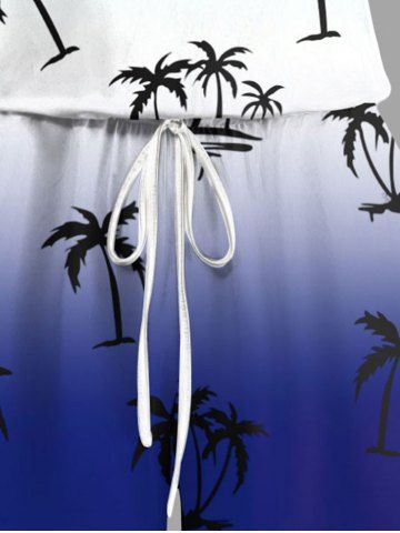 Plus Size Coconut Tree Ombre Colorblock Print Cinched Hawaii Romper - Blue - L
