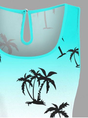 Plus Size Coconut Tree Ombre Colorblock Print Cinched Hawaii Romper - Blue - 2x