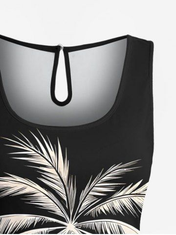 Plus Size Coconut Tree Ombre Colorblock Print Cinched Hawaii Romper - Black - S