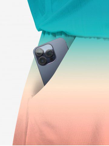 Graphic Pants > Plus Size Coconut Tree Ombre Colorblock Print Cinched Hawaii Romper
