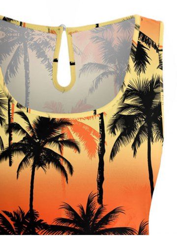 Plus Size Coconut Tree Ombre Colorblock Print Cinched Hawaii Romper - Orange - 6x