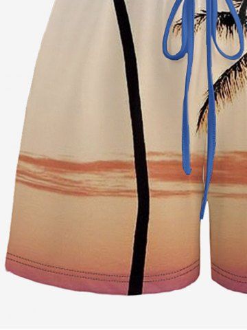Graphic Pants > Plus Size Coconut Tree Ombre Colorblock Print Cinched Hawaii Romper
