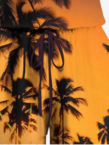 Plus Size Coconut Tree Ombre Dusk Print Hawaii Drawstring Pocket Romper - Orange - 4x