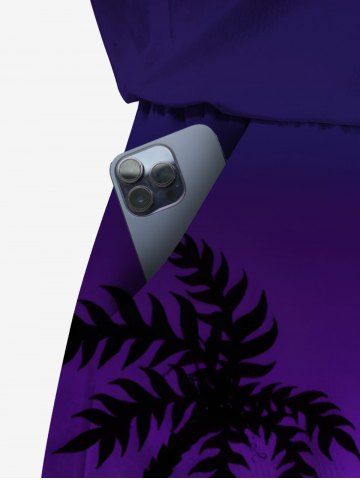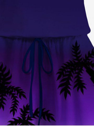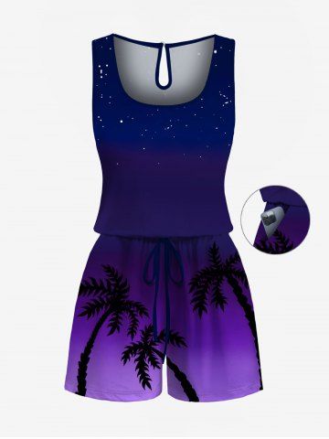Graphic Pants > Plus Size Coconut Tree Ombre Galaxy Print Hawaii Drawstring Pocket Romper
