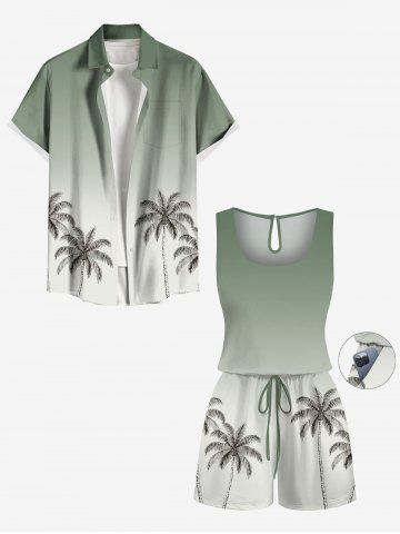 Plus Size Coconut Tree Ombre Print Cinched Hawaii Romper - Light Green - L