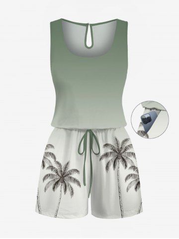 Plus Size Coconut Tree Ombre Print Cinched Hawaii Romper - Light Green - 6x