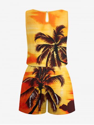 Plus Size Coconut Tree Ombre Print Cinched Hawaii Romper - Yellow - 5x