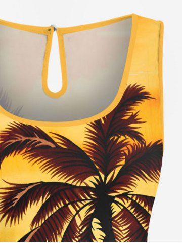 Plus Size Coconut Tree Ombre Print Cinched Hawaii Romper - Yellow - 6x