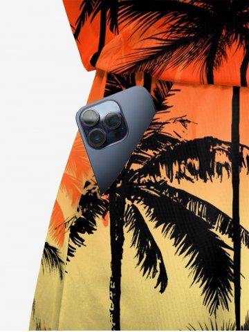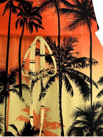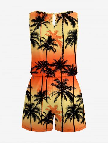 Plus Size Coconut Tree Ombre Print Cinched Hawaii Romper - Orange - M