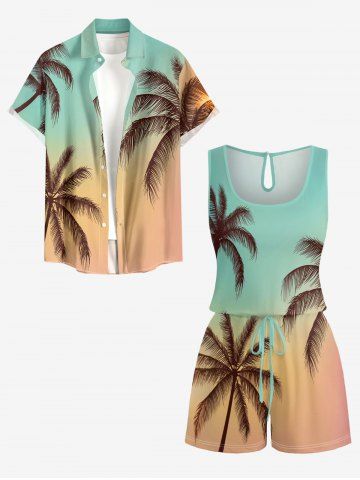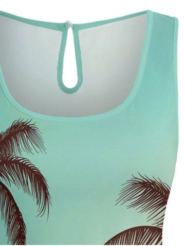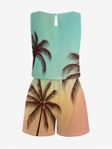 Plus Size Coconut Tree Ombre Print Cinched Hawaii Romper - Turquoise - Xxs