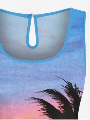 Plus Size Coconut Tree Ombre Sky Cloud Print Cinched Hawaii Romper - Pink - 5x