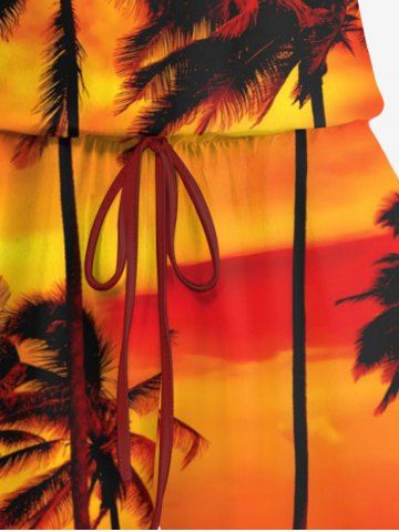 Plus Size Coconut Tree Ombre Sky Print Cinched Hawaii Romper - Dark Orange - S