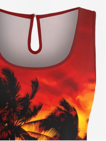 Plus Size Coconut Tree Ombre Sky Print Cinched Hawaii Romper - Dark Orange - 4x