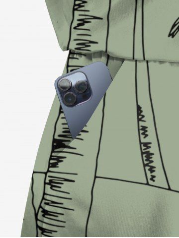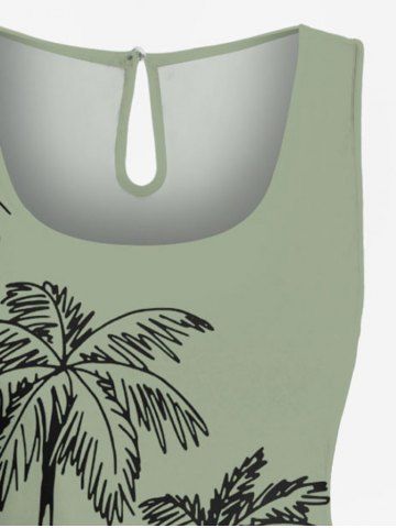 Plus Size Coconut Tree Print Cinched Hawaii Romper - Light Green - L