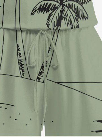 Plus Size Coconut Tree Print Cinched Hawaii Romper - Light Green - 5x