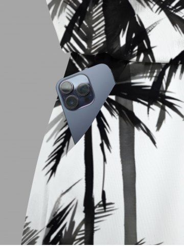 Plus Size Coconut Tree Print Cinched Hawaii Romper - White - 3x