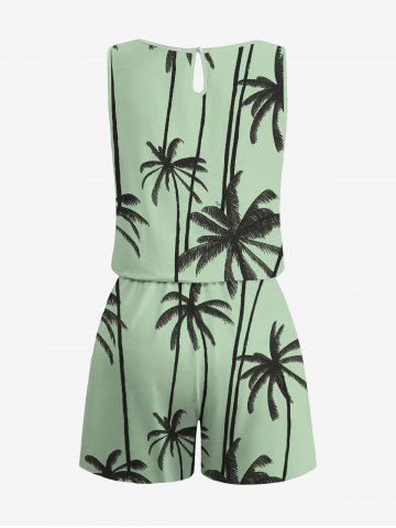 Plus Size Coconut Tree Print Cinched Hawaii Romper - Green - Xs