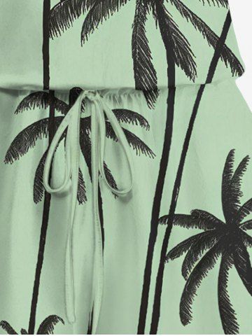 Plus Size Coconut Tree Print Cinched Hawaii Romper - Green - M