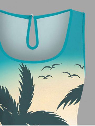 Plus Size Coconut Tree Sailboat Rudder Ombre Print Cinched Hawaii Romper - Green - 5x