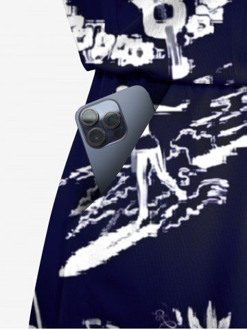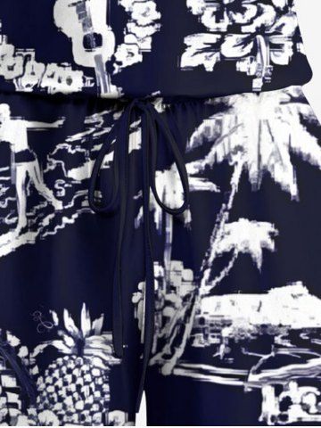 Plus Size Coconut Tree Sea Hibiscus Floral Pineapple Print Hawaii Drawstring Pocket Romper - Black - Xxs