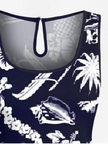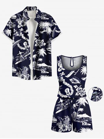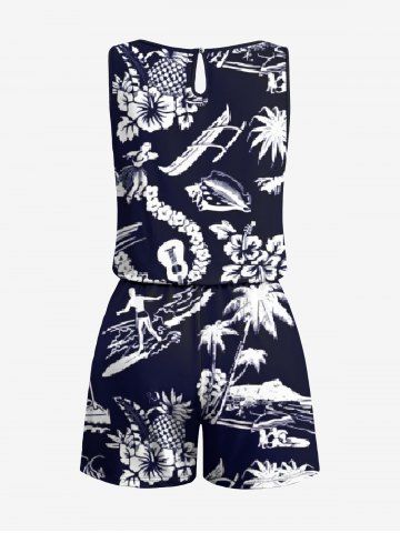Graphic Pants > Plus Size Coconut Tree Sea Hibiscus Floral Pineapple Print Hawaii Drawstring Pocket Romper