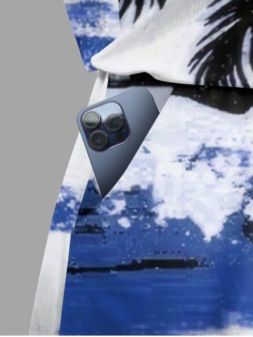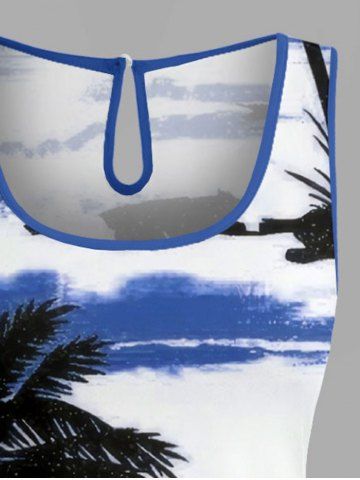 Plus Size Coconut Tree Sea Print Hawaii Drawstring Pocket Romper - Blue - 3x