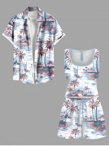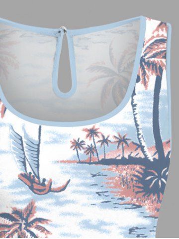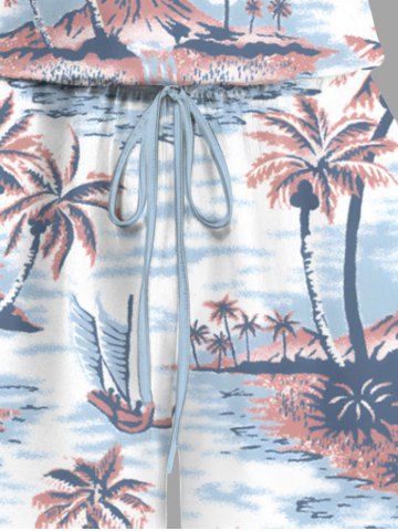 Graphic Pants > Plus Size Coconut Tree Sea Waves Boat Print Cinched Hawaii Romper