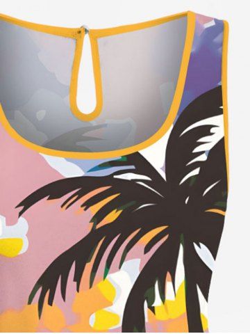 Plus Size Coconut Tree Sun Cloud Seascape Print Cinched Hawaii Romper - Yellow - L