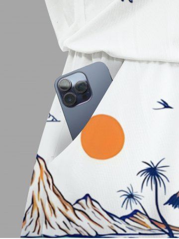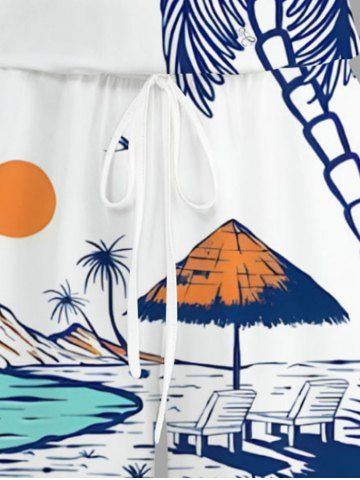 Plus Size Coconut Tree Sun Mountain Seascape Print Cinched Hawaii Romper - White - M