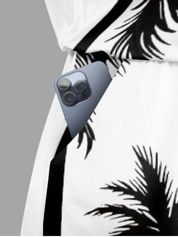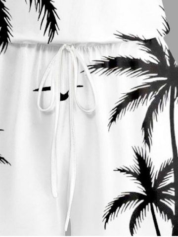 Plus Size Coconut Tree Sun Print Cinched Hawaii Romper - White - 1x