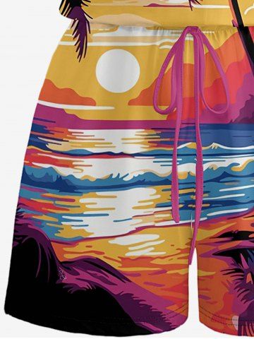 Plus Size Coconut Tree Sun Seascape Print Cinched Hawaii Romper - Rose Red - Xxs