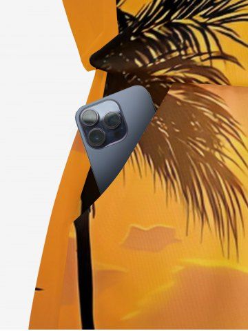 Plus Size Coconut Tree Sunset Print Cinched Hawaii Romper - Dark Orange - 5x