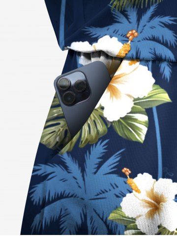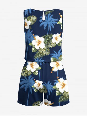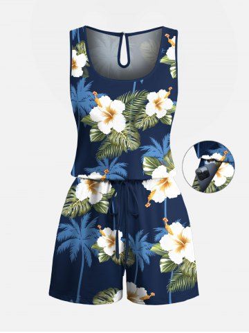 Graphic Pants > Plus Size Coconut Tree Tropical Leaf Hibiscus Flower Print Hawaii Drawstring Pocket Romper