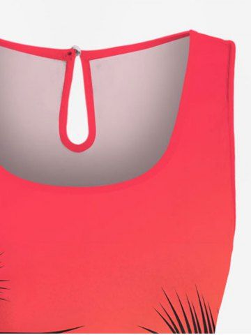 Plus Size Coconut Tree Tropical Leaf Ombre Print Cinched Hawaii Romper - Red - Xxs