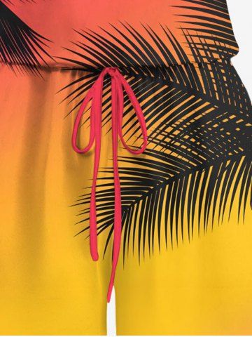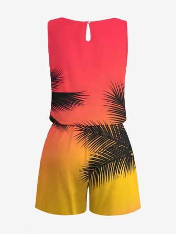 Plus Size Coconut Tree Tropical Leaf Ombre Print Cinched Hawaii Romper - Red - L