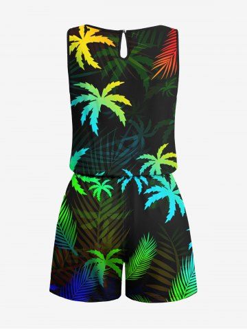 Plus Size Coconut Tree Tropical Leaf Print Cinched Hawaii Romper - Black - S