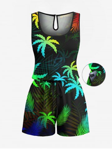 Graphic Pants > Plus Size Coconut Tree Tropical Leaf Print Cinched Hawaii Romper