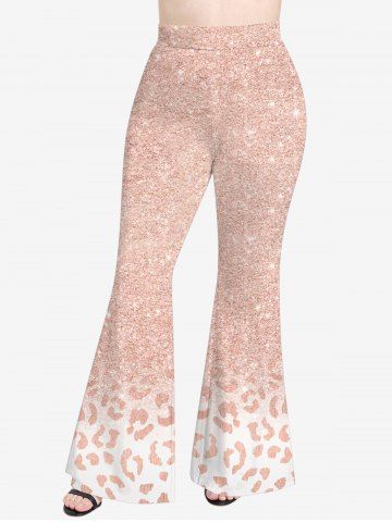 Plus Size Colorblock Leopard Sparkling Sequin Glitter 3D Print Flare Pants - Light Pink - 3x
