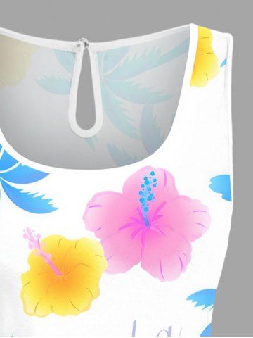 Plus Size Colorful Coconut Tree Hibiscus Flowers Print Cinched Hawaii Romper - White - Xs