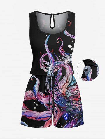 Graphic Pants > Plus Size Colorful Octopus Dots Print Cinched Hawaii Romper