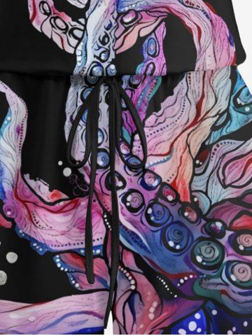 Graphic Pants > Plus Size Colorful Octopus Dots Print Cinched Hawaii Romper